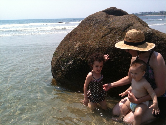 Last week I packed the girls up and we headed up to New England. Our first stop was to visit some dear friends in Lowell, MA and then we headed down to Rhodes Island to seeing my sister, Hilary, and Ken. The highlight of our stay with them was spending a morning at the beach. Neva had been very excited about being at ocean. At first she was content to just stand with me at the edge of the water and hold my hand but eventually became really comfortable and even ventured way out with me in the waves. Frances, however, was pulling her hand out of mine and racing out to sea from the moment we got there. Oh these very different girls.